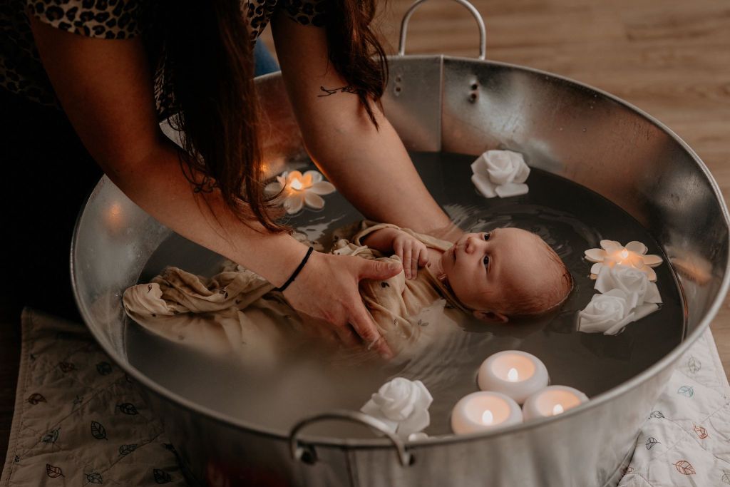 - Bain enveloppé – communication avec bébé , resserrage du bassin