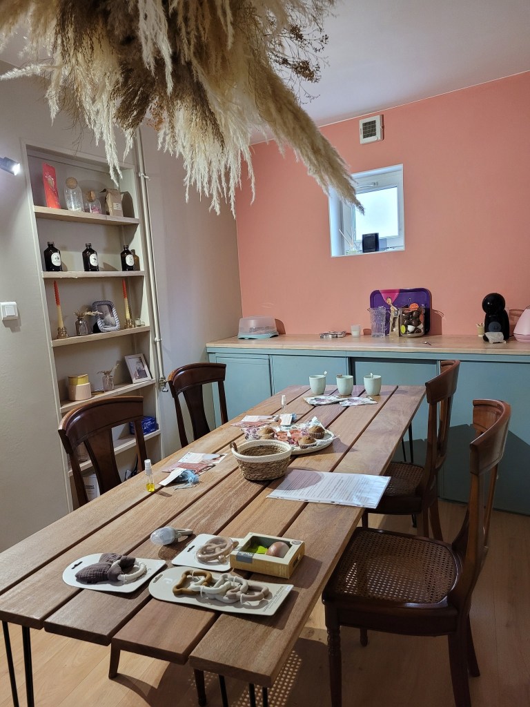 Nous avons commencé avec un temps d’échange autour d’une boisson chaude et des muffins pour faire connaissances, j’ai ensuite partagé des astuces naturelles pour soulager bébé lors des poussées dentaires. Nous avons fini avec une séance de réflexologie plantaire que les mamans peuvent reproduire à la maison dès que besoin