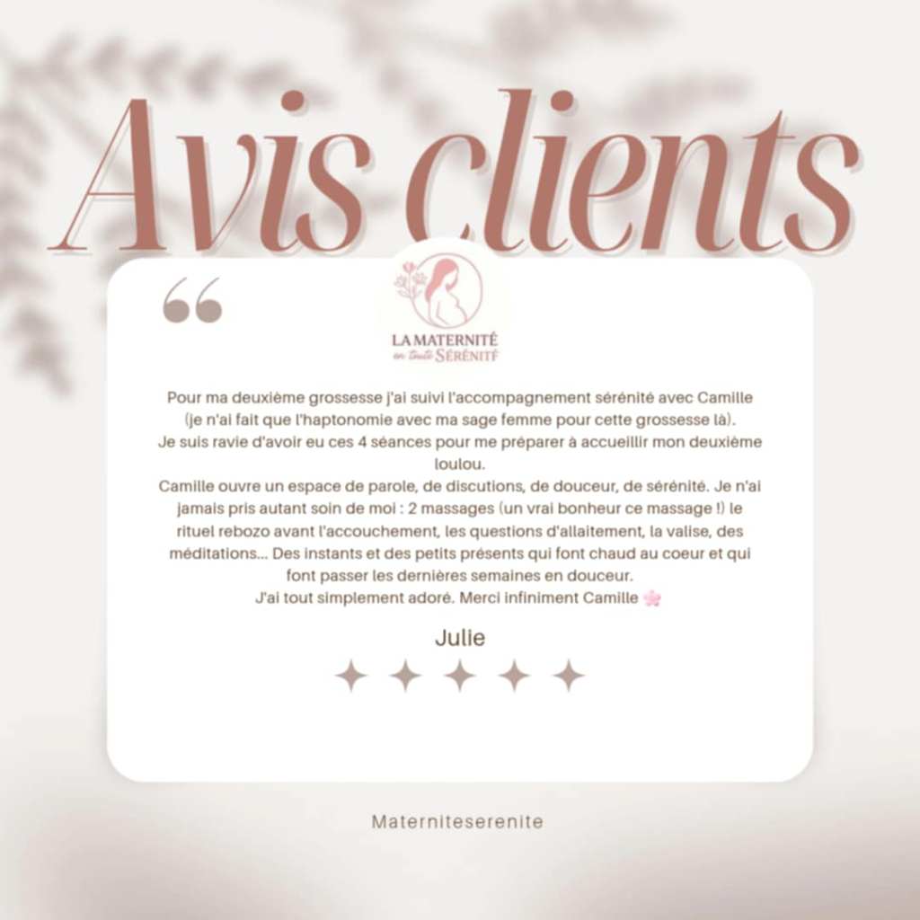 L’accompagnement sérénité sur 4 séances à partir du 6è mois de grossesse.