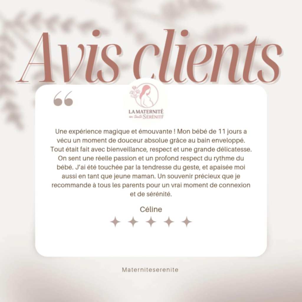 En tant qu’accompagnante périnatale, je vous guide à travers chaque étape de ce rituel afin que vous puissiez, vous aussi, participer activement à ce moment unique. J’emmaillote bébé, nous créons un cocon avec ambiance douce et agréable pour bébé, avec un fond sonore calme. Je commence les mouvements, et puis à votre tour vous pourrez participer à ce moment. Vous apprendrez à le reproduire vous même les mouvements, créant ainsi des souvenirs précieux et une complicité renforcée avec votre bébé.